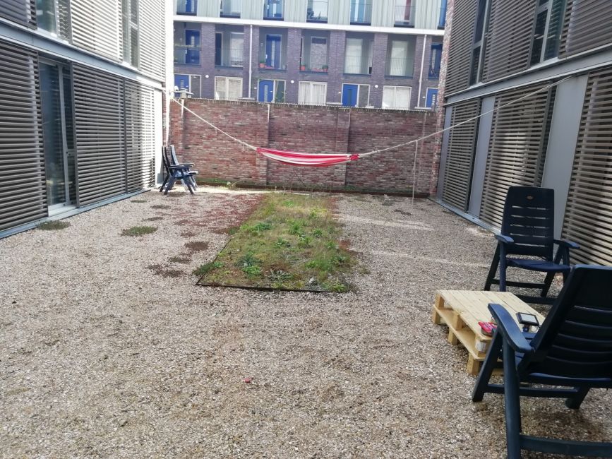 Mijn onzekere tuintje in Utrecht. Op korte termijn onzeker want de wind gaat hier best tekeer en ik durf haast niet uit het raam te kijken in de angst dat ik peperplantjes zie vlliegen. Aan de andere kant zal het wel meevallen? En ik heb binnen nog genoeg onder de lamp staan wat als backup uitgeplant kan worden. De andere onzekerheid is degene die elke anti-kraker wel kent, en dat is dat we niet weten hoe lang we hier nog mogen wonen.
