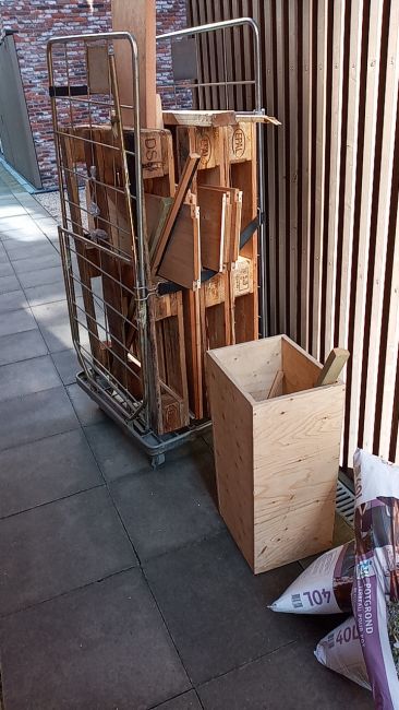 Dit was een maand geleden. Over de lengte noord-zuid, dus gedurende een zonnige dag best wat zon. De gebouwen links en rechts zijn niet heel hoog, maar een volle dag zon zit er op de meeste plekken niet in. Ik heb enigsinds rekening gehouden met de plaatsing van de bakken daarmee, maar het is wat het is.