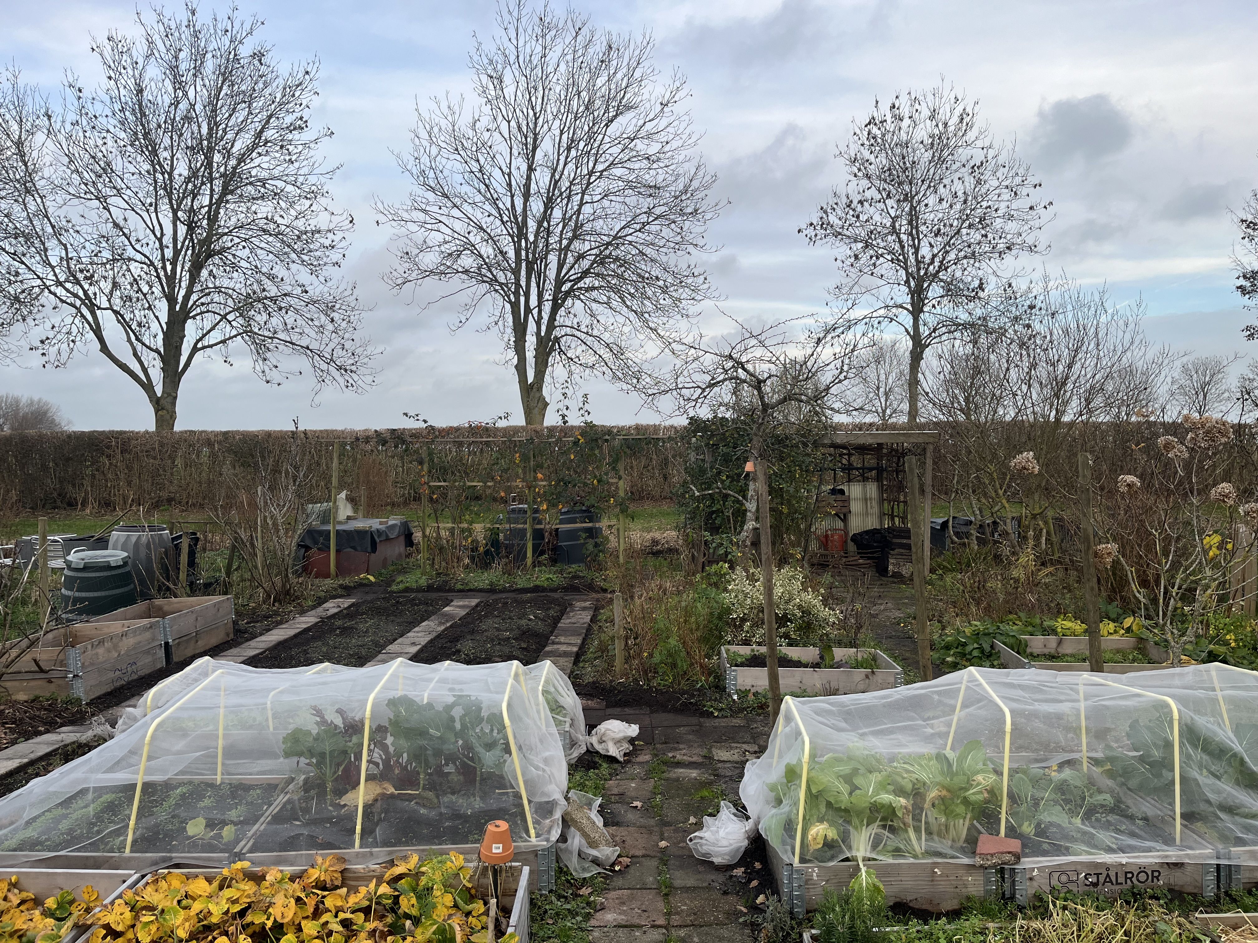 Ik zit nog in m'n maag met het worteldoek wat tussen de bakken ligt en dat ligt er kennelijk al heel lang....