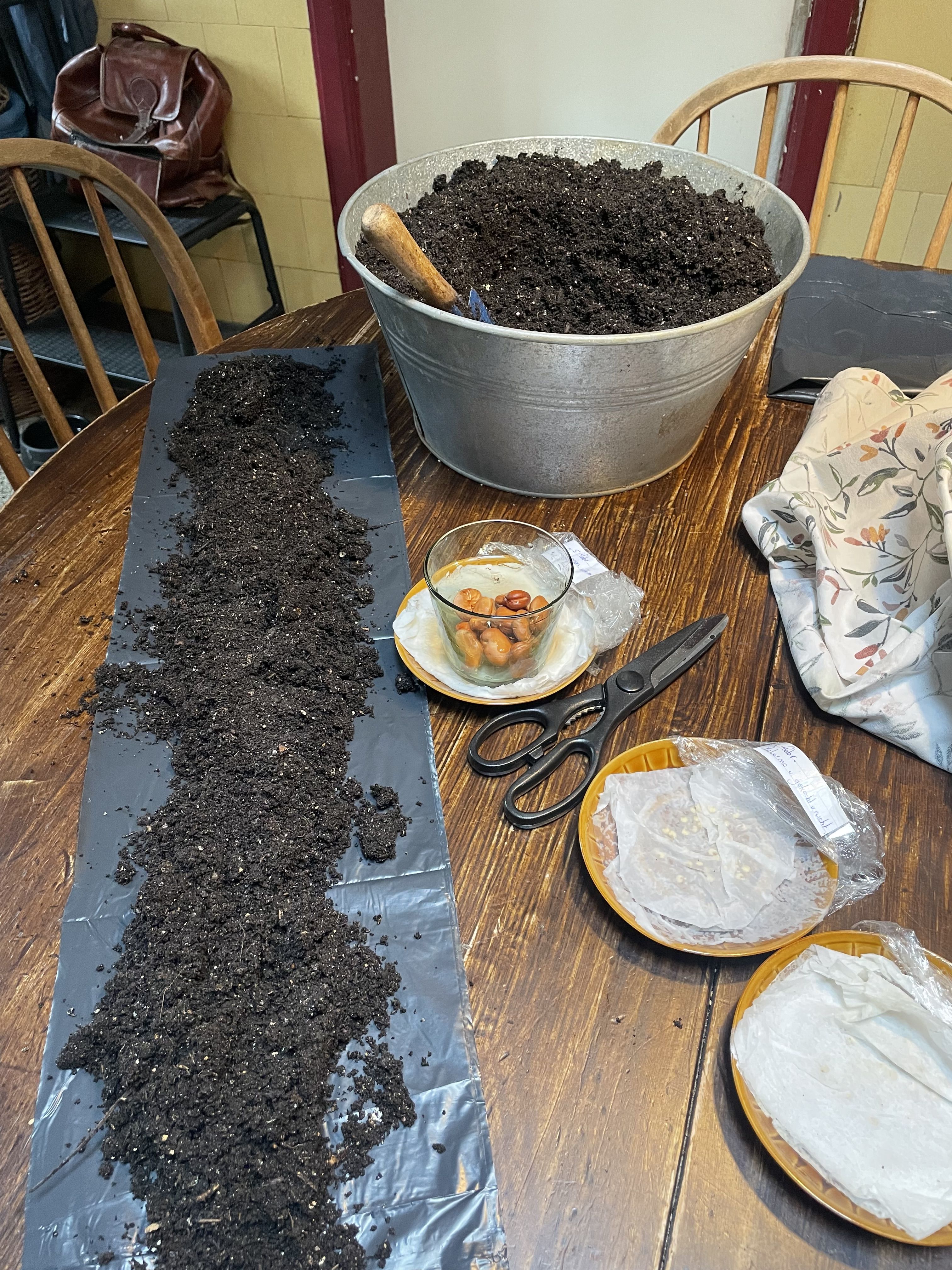 Ook in een rollade gelegd ( eentje is de kiem al te zien!) Voor de tuinbonen; Vica Faba witkiem maakte ik de rollade 20cm diep. En zette ik de rol in de koele bijkeuken.