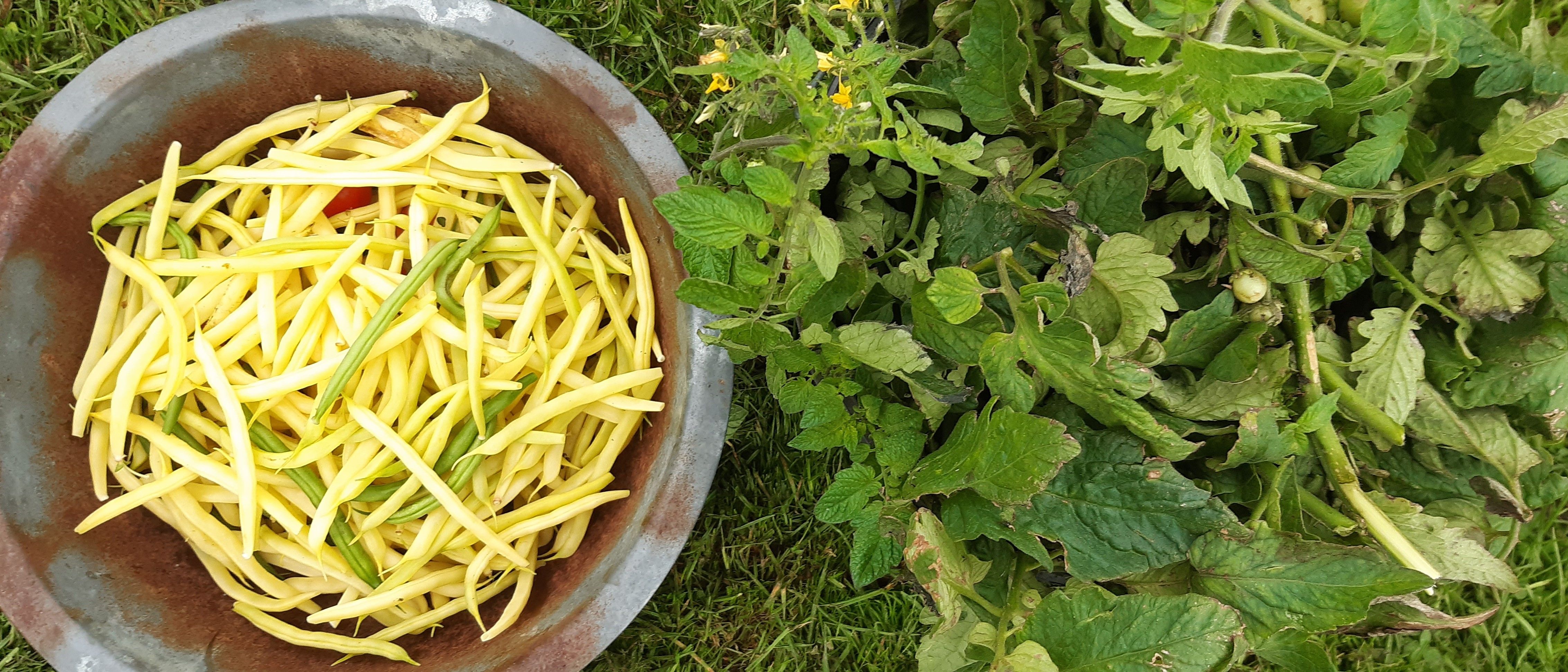 Ook teel ik voor een maand of negen aardappels, planten voor natuurlijke kleurstoffen en natuurlijk wat bloemen.