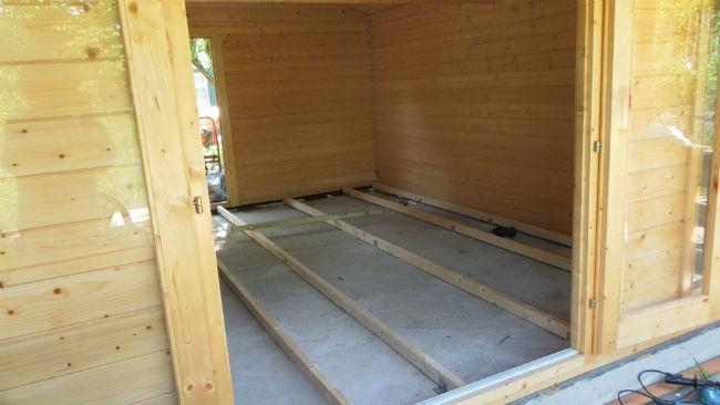 Dus heeft Dennis het eerste gedeelte van de vloerdelen in zijn eentje gelegd.