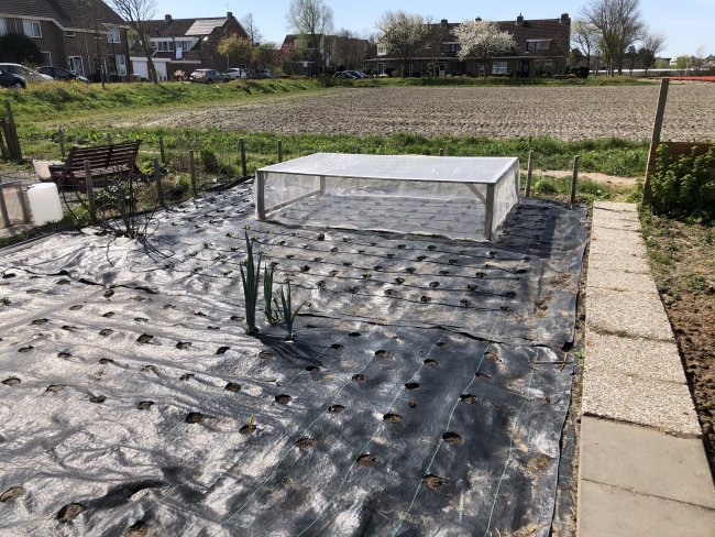 Verder bosui, rucola, veldsla, snijbiet, aardpeer, aardappels en uien in de grond gezet.