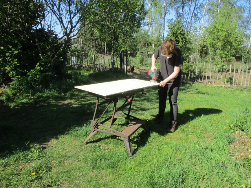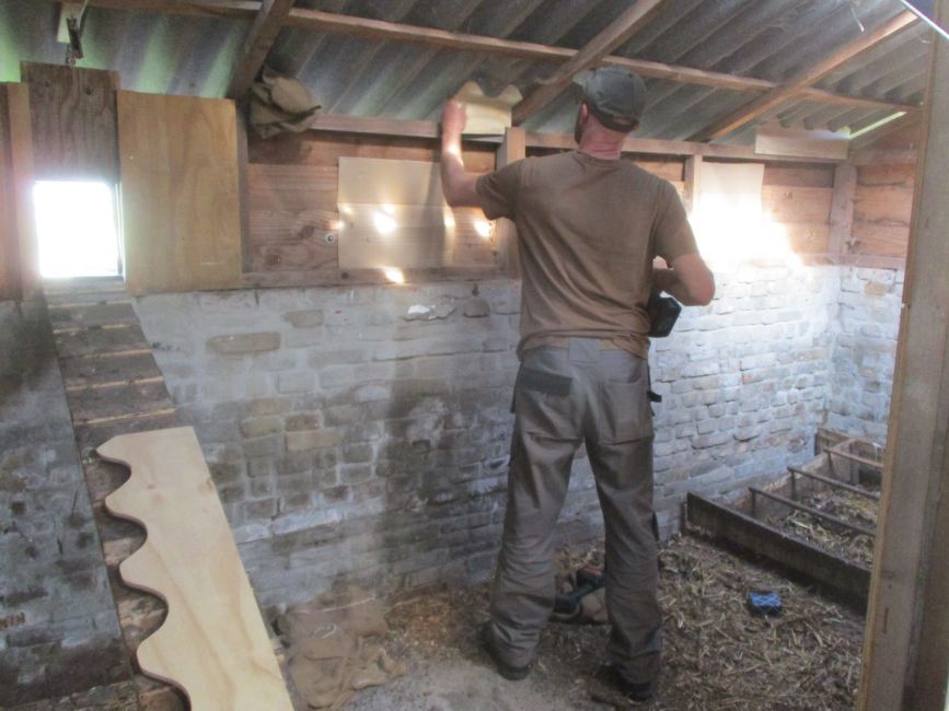 Het kippenhok wordt ook eindelijk afgemaakt. Er moesten nog wat stukken worden afgetimmerd, met een boel golfjes tegen de golfplaten aan. En mijn zusje blijkt daar erg goed in. Naar eigen zeggen omdat ze naar de kunstacademie is geweest ![]()