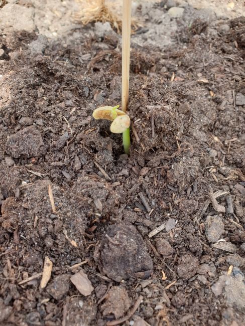 Hopelijk komt er niet ineens weer nachtvorst, want alles groeit nu gestaag. De tomaten staan overal op hun plek. Vanmorgen de eerste sperzieboon boven de grond begroet, en aan de doperwt verschijnen de eerste bloemen. De asperges worden lange sprieten, met wat babysprietjes ernaast, ben benieuwd hoe dat er over een paar weken bijstaat. Een enkele pompoen en courgette met lichte vorstschade, dat overleven ze zo te zien wel, en zo niet dan heb ik er ook nog zonder.