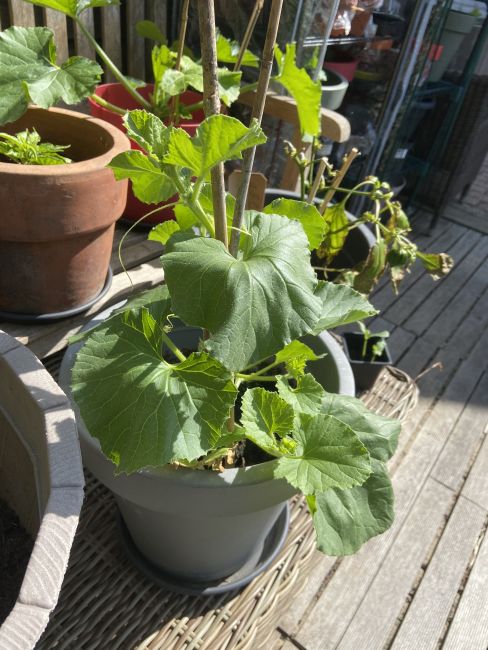 Met dit mooie weer groeien mijn planten echt als een speer! De courgettes doen het erg goed en die staan dan ook dag en nacht nu buiten in potten. Ook doet mijn meloen het in de kas erg goed, maar hij is zo groot geworden dat ik hem nu maar uit de kas heb gezet. Denken jullie dat hij het ook goed doet buiten de kas? Het is inmiddels namelijk wel een grote plant geworden en de kas staat overdag sowieso wel de hele dag open.