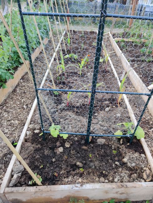 Bed 6: Komkommer, tuinboon, rode biet en knolvenkel
