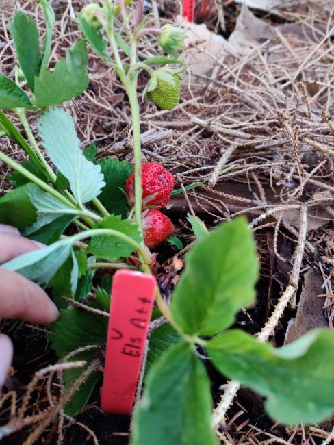 De aardbeienoogst is langzaamaan begonnen, maar ik had eerlijk gezegd al wat meer aardbeien verwacht. Wellicht moet ik ook gewoon geduldig zijn. Van de week ook gekeken of er bij de knoflook al wat te zien was en er lijken al kleine knolletjes aan te zitten. De stengels blijven echter erg dun, dus ik vrees dat het geen hele bollen met teentjes meer worden. Ik had ze wel laat gepoot.