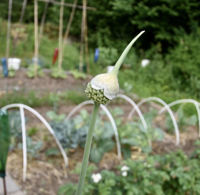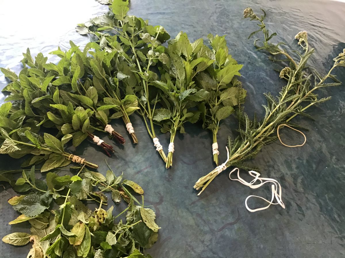 Ik ben al weer flink bezig kruiden te plukken en te drogen voor de kruidenthee. Brandnetel en kamille zitten al in de potten, zo ook een deel van wat ik nodig heb van de volgende bladeren: aardbei, zwarte bes, braam, framboos. Dat doe ik in delen. Vandaag munt, melisse en duizendblad. Onderste viezige blaadjes eraf, elastiekje erom en op de zolder bij het open raampje in de buurt opgangen.