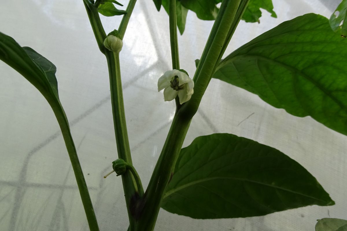 Dan zie ik dat er weer een paprika aan het bloeien is :
