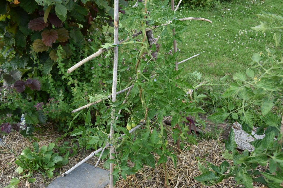 Er is gevraagd of ik wat foto’s wilde zetten van de tomaat van Wil de Voogt die @weknow me als zaadjes aan mij gegeven heeft, jaren geleden. Het is een tomatenplant die erg sterk is en die je kan laten uitgroeien en de dieven kan je weer aanbinden. Ik heb er twee in mijn tuin, het is lastig te laten zien hoe de plant groeit, maar geloof me Hij groeit mooi, stevige en gezonde takken en bladeren, de best groeiende en gezondste plant die ik heb. Voorlopig heb ik nog geen rijpe vruchten maar dat heb ik nog aan geen enkele buitenplant.