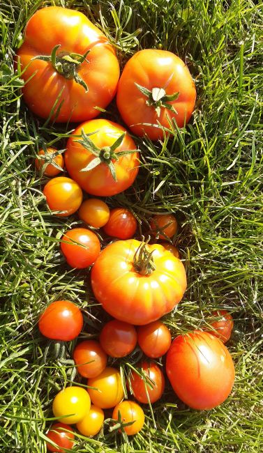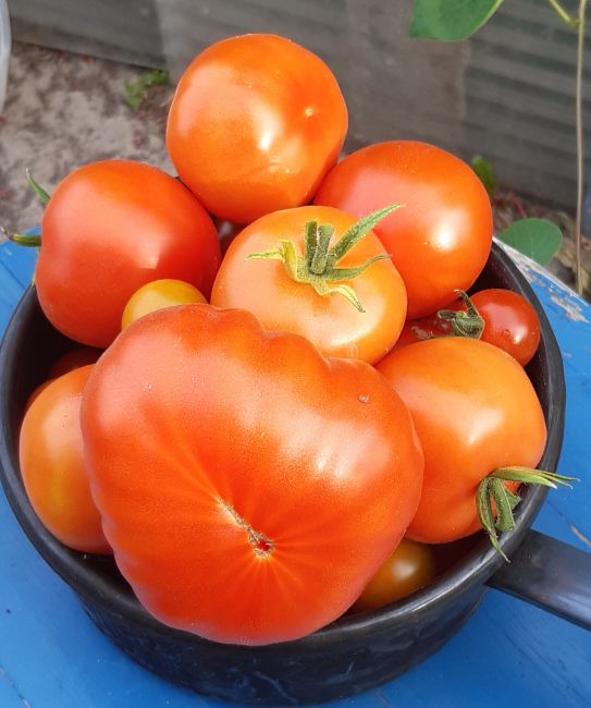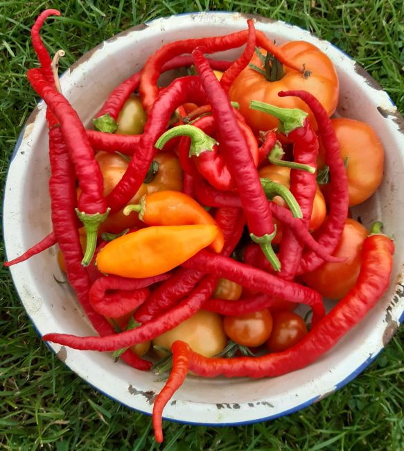Ook de tomaten en pepers geven elke dag flink.