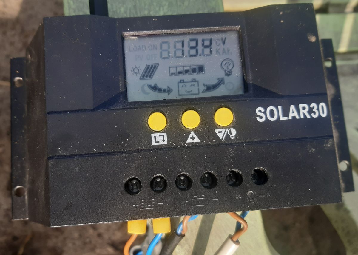 Ook voor de tuin. Het zonnepaneel is klaar om de accu voor de pomp op te laden.