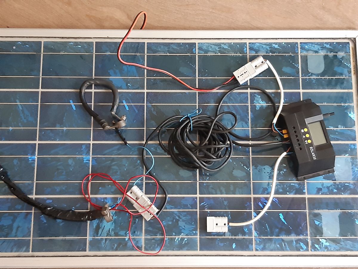 Intussen is de opstelling klaar en getest alleen moet ik nog even kijken hoe ik een iets hogere laadspanning krijg voor mijn gekregen AGM accu.