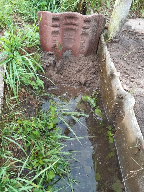46 mm en mijn provisorische stuwmeertje werd gevuld en stroomde over.