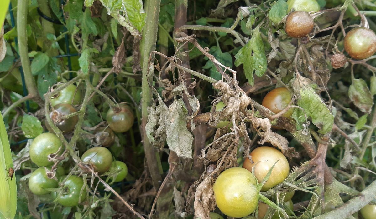 Ook heb ik als taak de tomaten en aardappels op het complex te controleren en daar trof ik de eerste ellende aan.