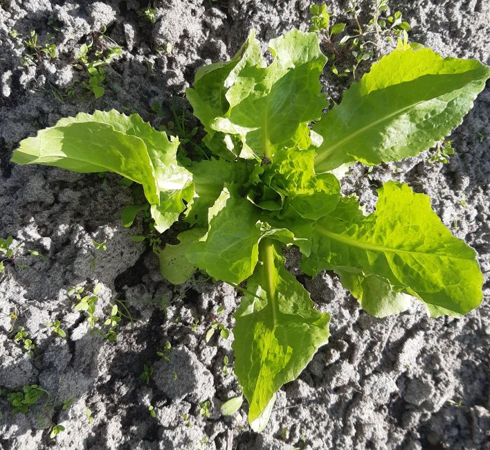 Ik plant nog wat sla voor de nateelt en schoffel de andijvie radicchio en koolplantjes.