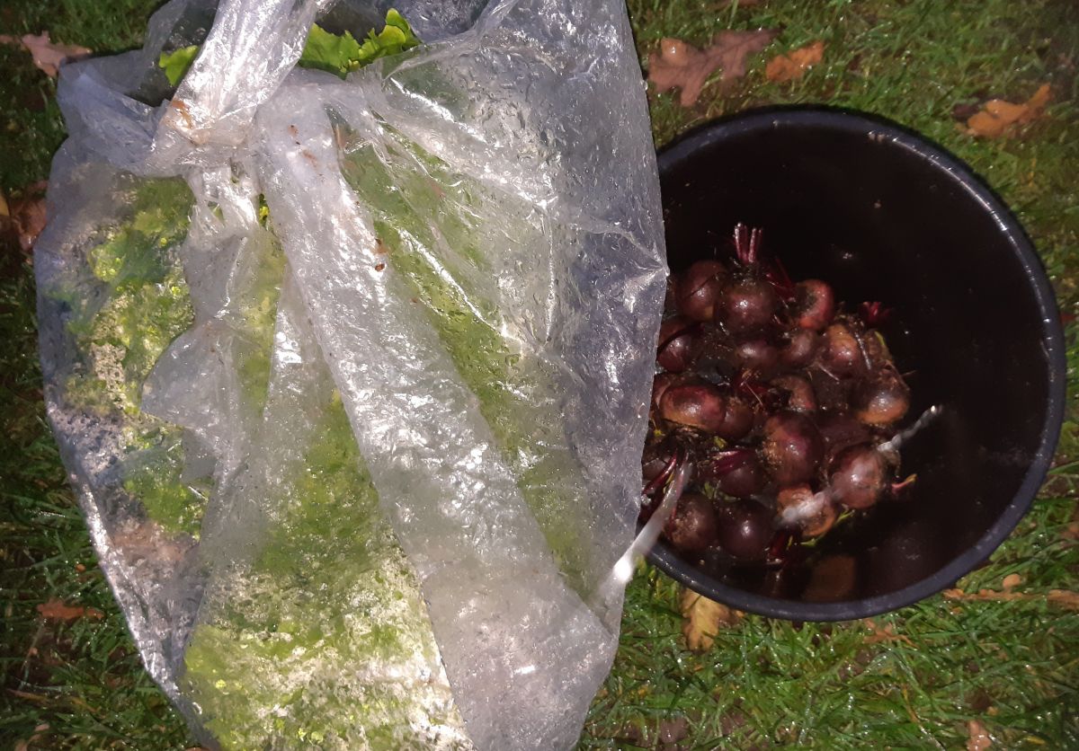 Hier dezelfde andijvie op de tuin, samen met de laatste bieten, weer een stukje leeg en opgeruimd.