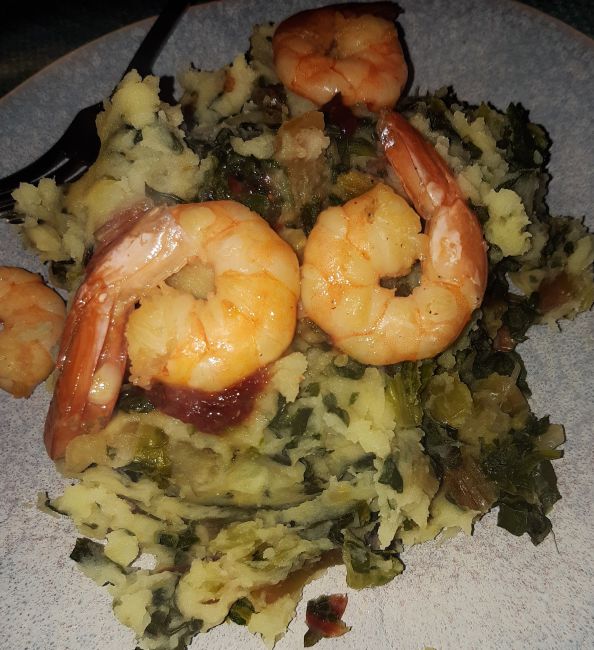 Dit moest een wok maaltijd worden met snijbiet, maar door drukte werd het een stamppot....