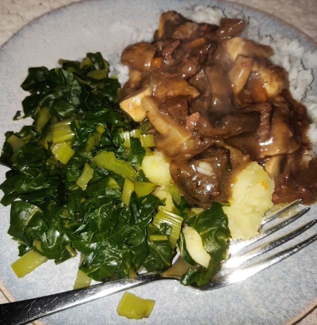 Deze winter heb ik niet zo heel veel soorten wintergroenten en ook de eigen uien zijn deze week opgegaan.
