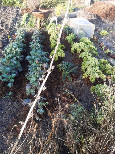 Ik heb nog een paar rijen Russische bladkool en laat geplante palm en boerenkool.