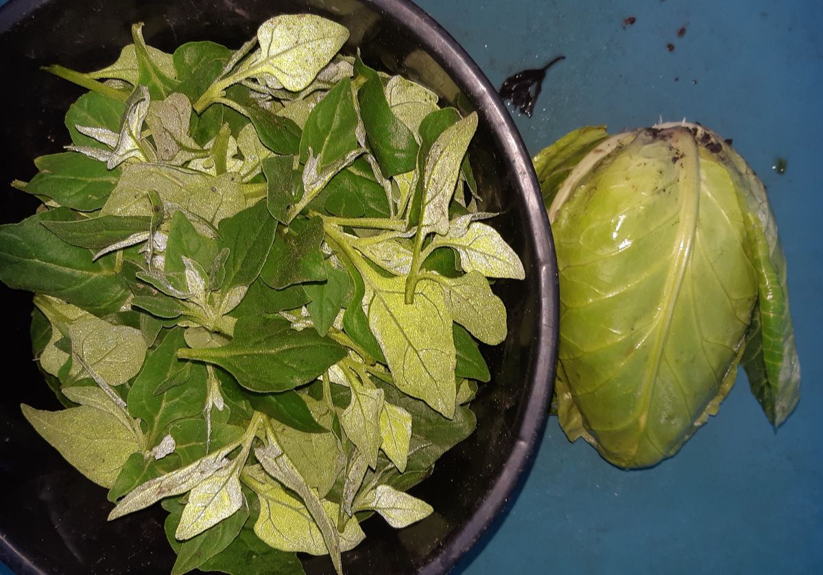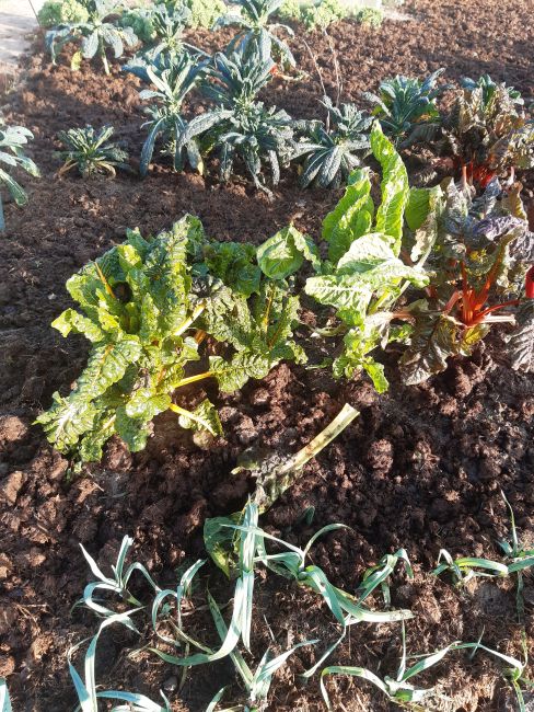 De kool en snijbiet die er nu nog staat kan er ook nog van profiteren.