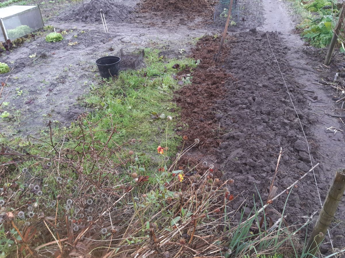 Nadat ik de jonge plantjes verzet heb breng ik mest op en begon ik gisteren met spitten.