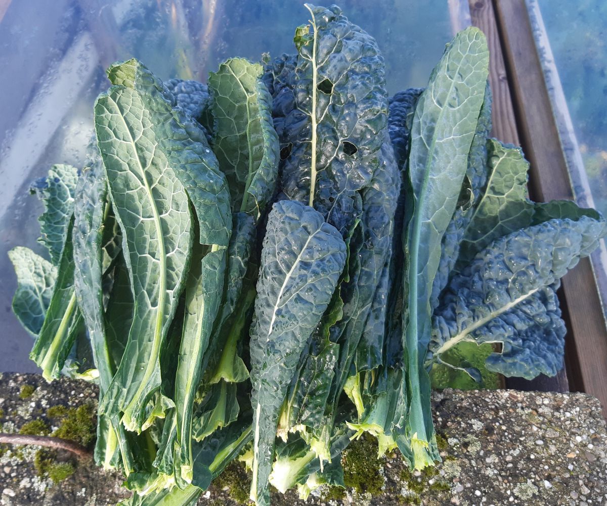Ook is er weer palmkool, ik oogst van iedere plant de mooiste volgroeide bladeren.