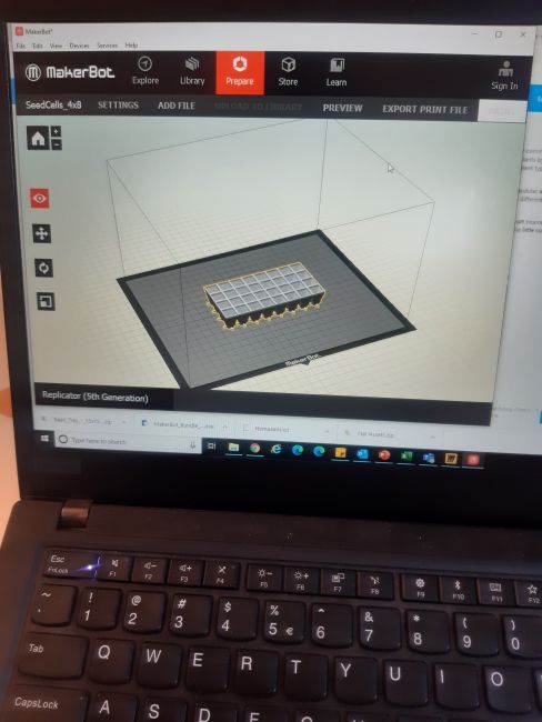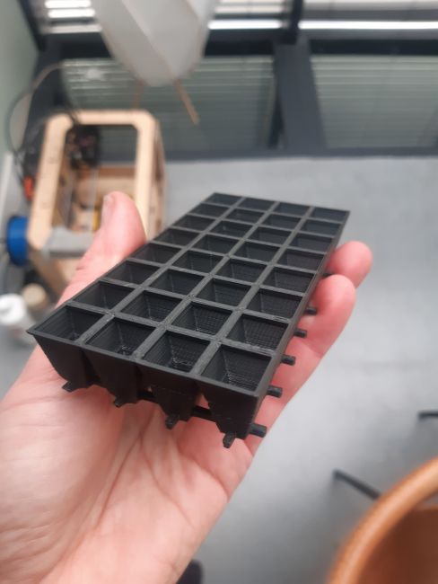 Voorzaaien in vermiculiet vind ik echt heerlijk! Geen viezigheid, je kunt het spul hergebruiken (duurzaam) en superhandig omdat je het plantje er zo uit trekt om het daarna in potgrond te zetten. Ik wil wel graag alles elke seconde controleren en als er dan een plantje zn kopje laat zien wil ik ook meteen weten welke het is, zodat ik zeker weet dat ik genoeg plantjes van het een of het ander heb. Administratie is dan denk ik het zwakke punt met mijn 'gooi wat in het bakje' methode, dus dit jaar heb ik mijn nerd-bril opgezet en met de 3d-printer een stel potjes geprint zodat ik precies in de gaten kan houden welk zaadje nu al wel of niet opgekomen is. En zo geschiedde. Ik nam een 3d Model en maakte daar een printfile van