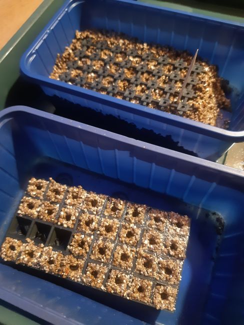 ik heb mijn twijfels over de diepte van de potjes, maar aangezien ik al een mini glazen potje voorbij heb zien komen op het forum met 3 gekiemde zaadjes, lijkt me dit niet eens zo heel gek. Het seizoen is nu echt begonnen!