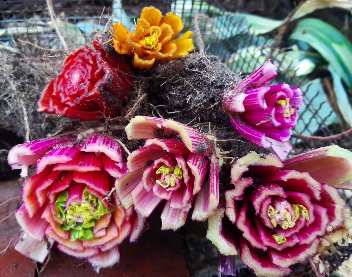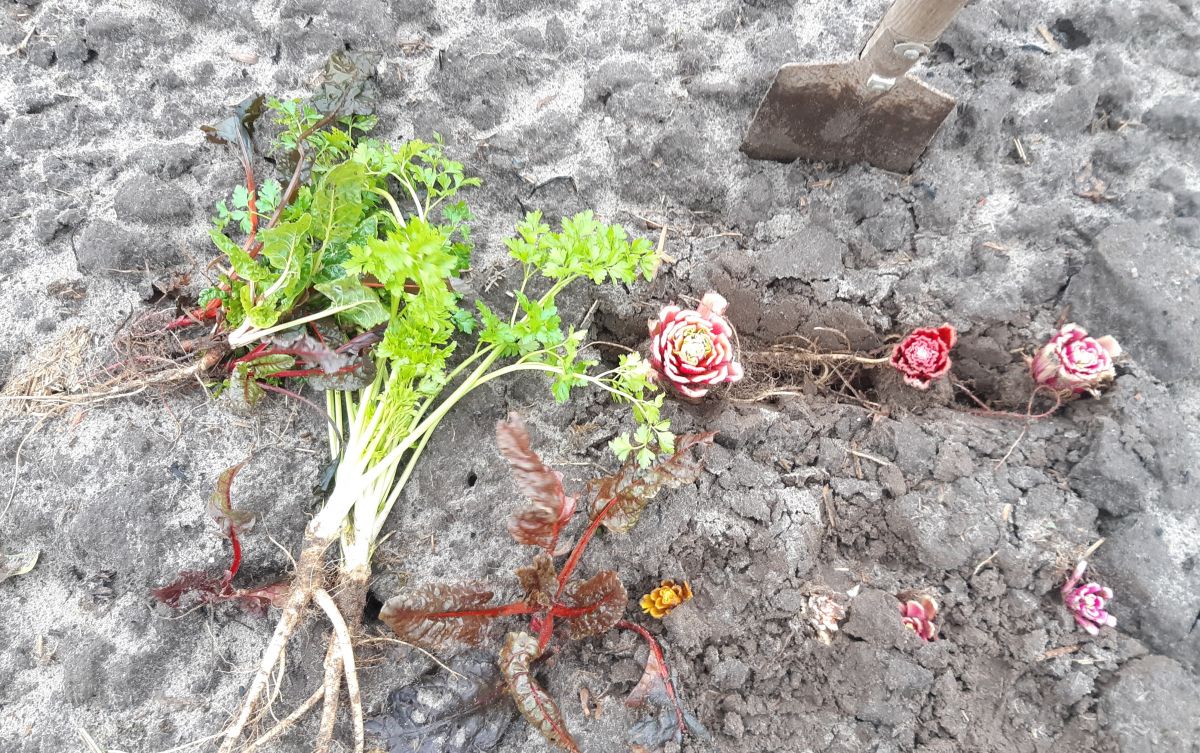 De wortels van de snijbiet die uit de bak komt zet ik nog terug in de volle grond voor hopelijk een tweede oogst.
