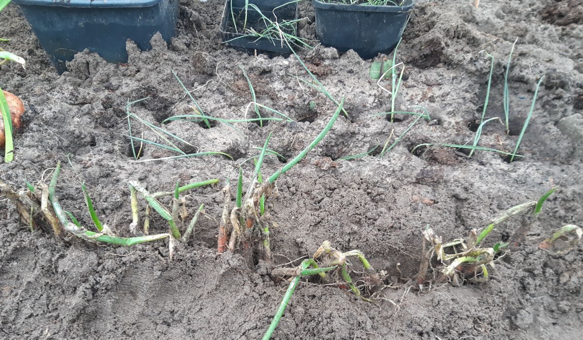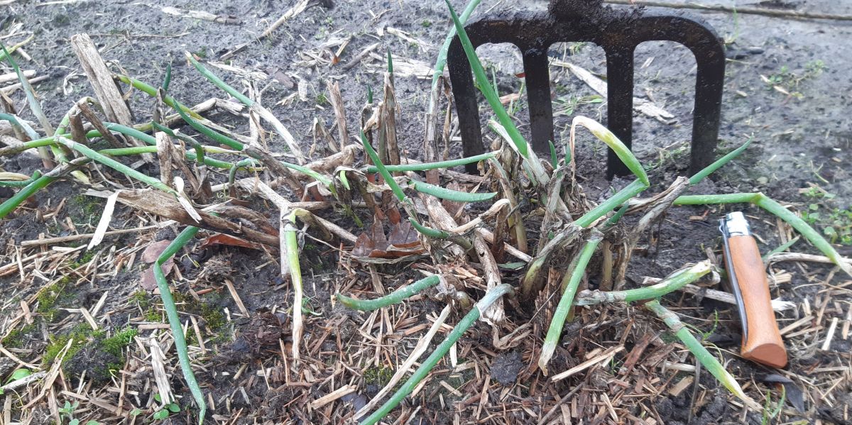 De Welsh onions zet ik onder glas om ze zo te vervroegen.