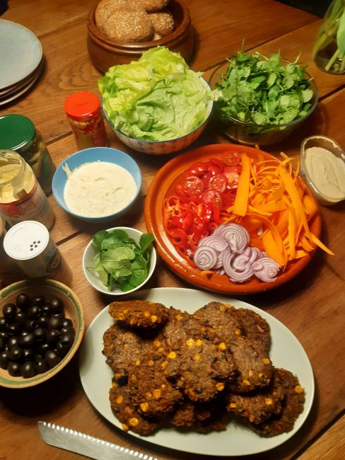 Dat is voor bij de bonenburgers, waar ook nog mais uit de vriezer in zit.