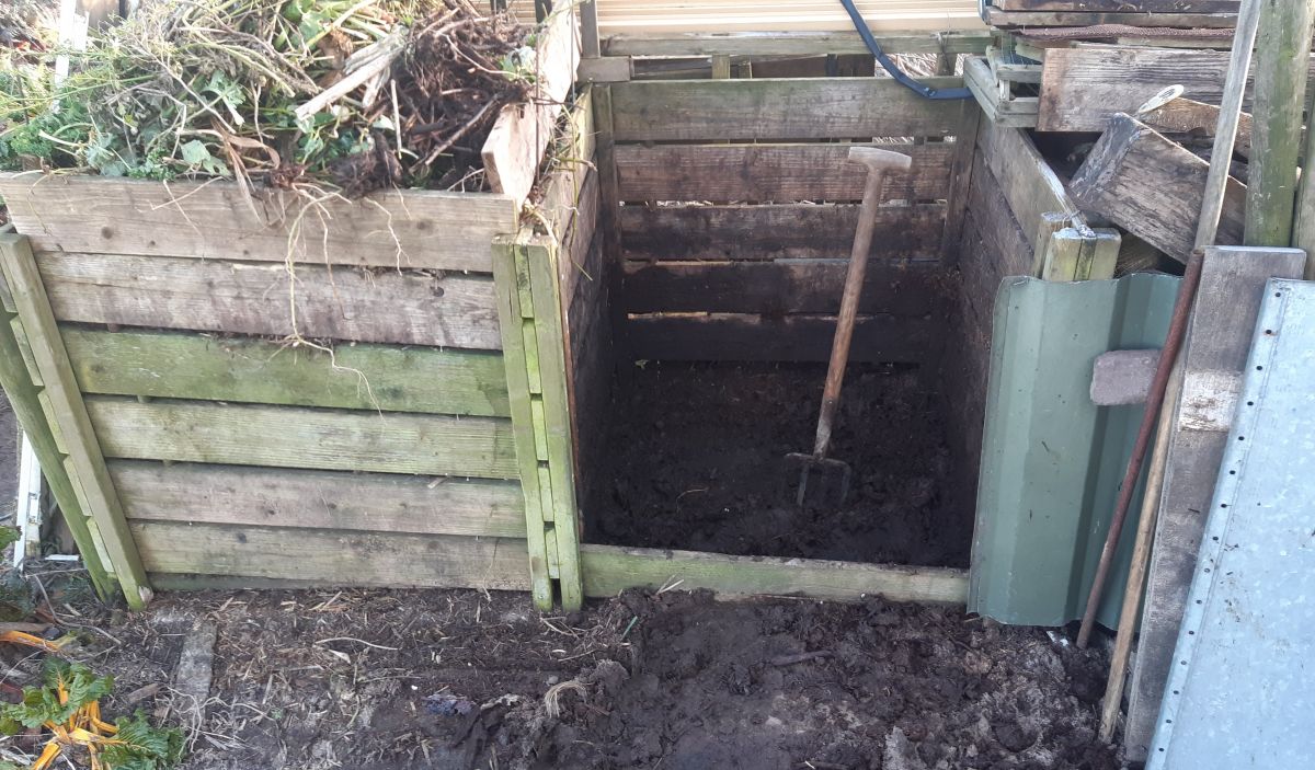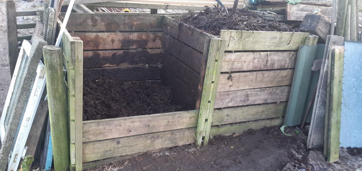 Ik haal het laatste beetje uit een compostbak en zet het maar even op een stuitje.