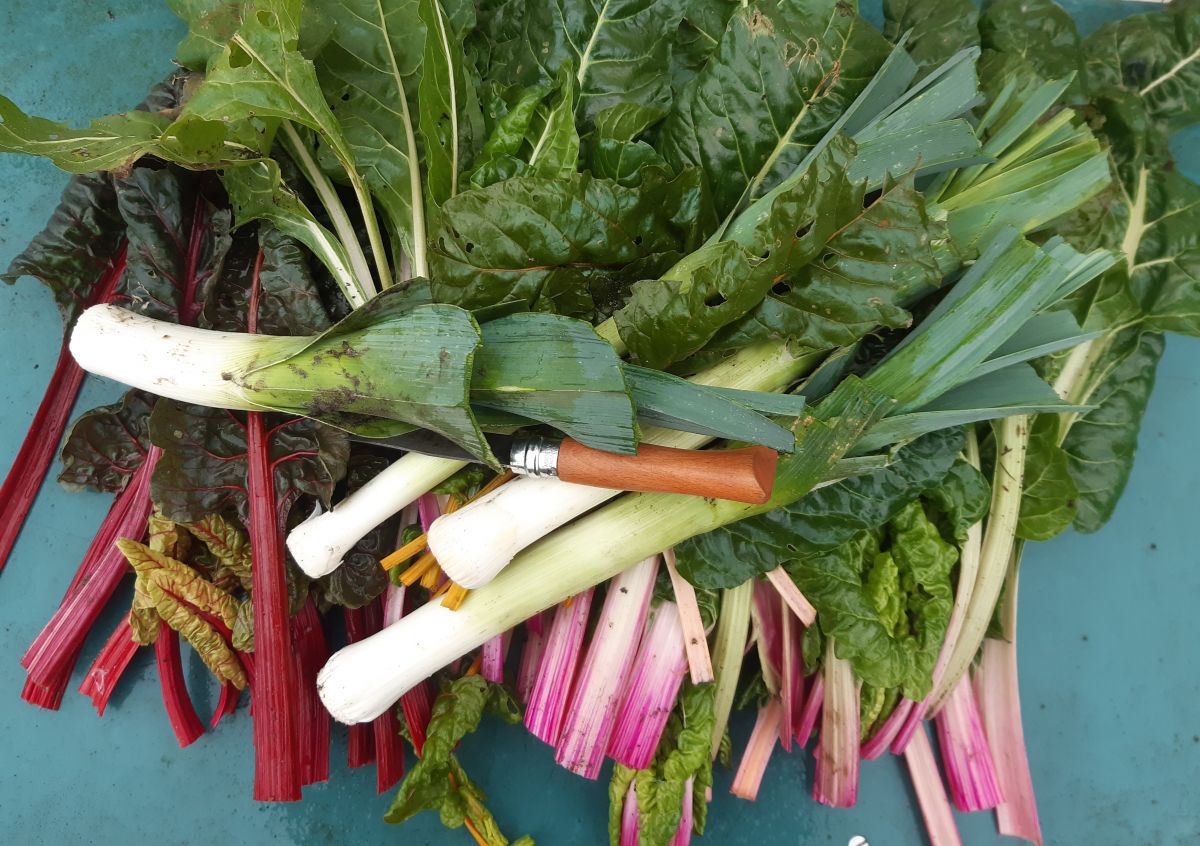 Ik oogst vast wat prei en snijbiet. Dat zal niet gaan komende koude week.