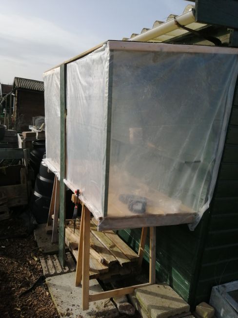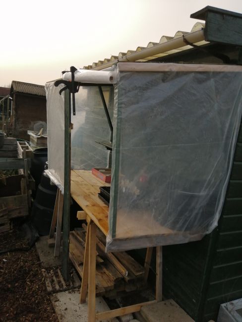 Vorig jaar heb ik voor het eerst een soort zaaitafel / kas gemaakt. Zodat ik kan voorzaaien op de tuin zodat ik niet alles thuis heb staan.