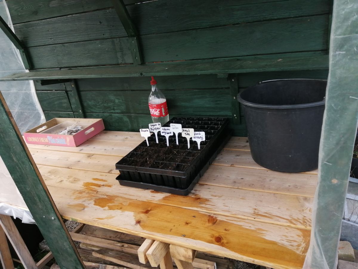 En ik kon het niet laten om al wat in te zaaien, wat peultjes en bleekselderij. Ach ik zie wel of er wat uitkomt.
