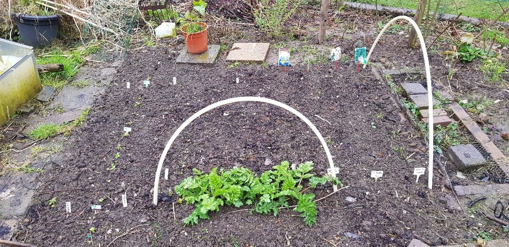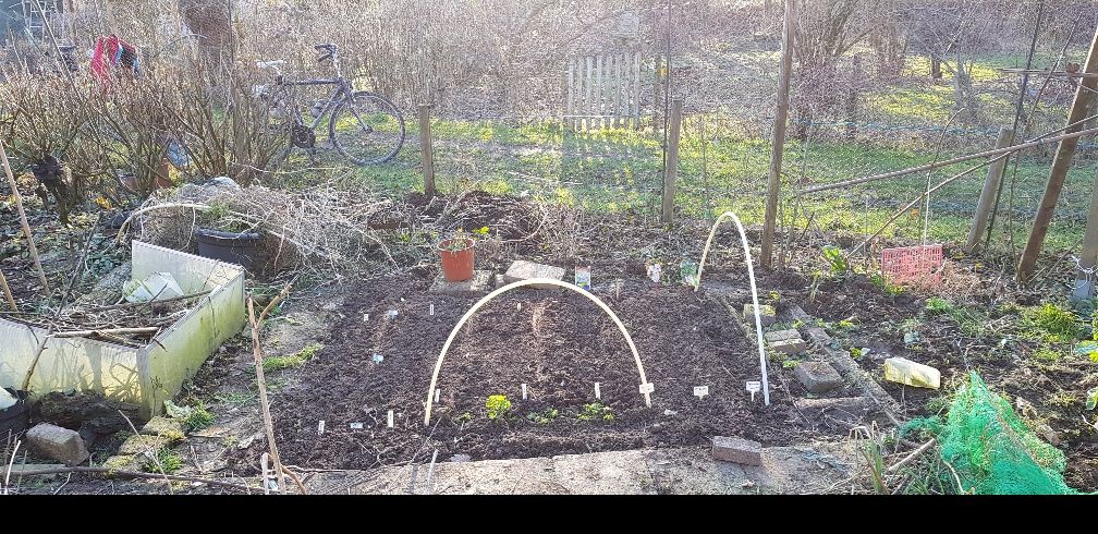 Het laatste weekend van februari heb ik in de volle grond mijn eerste rijtjes gezaaid:
