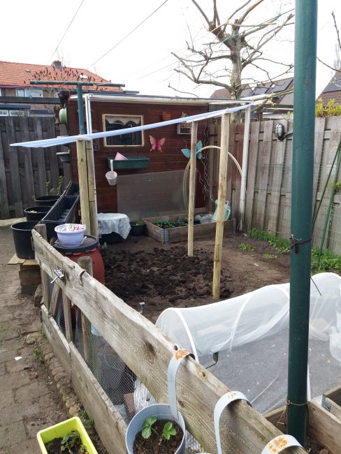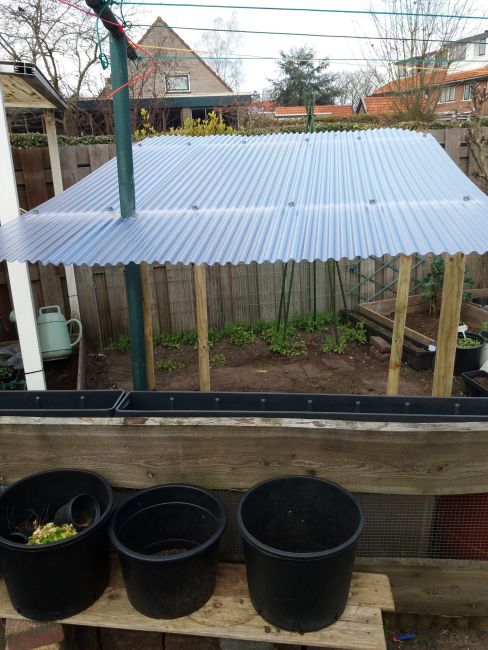 Vandaag heeft mijn verkering een mooi afdakkie gemaakt voor de tomatenplantjes straks.