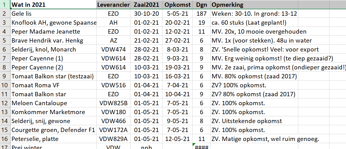 Het kiemen van "normale" zaden. Dat ging dit jaar snel. Gekend trage kiemers als Chinense peper, en peterselie: 11 dagen. De rest sneller.