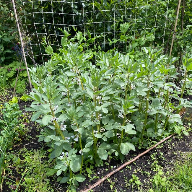 De tuinbonen bijvoorbeeld, die staan een meter hoog, hebben geen luis en zitten vol met bloemen.