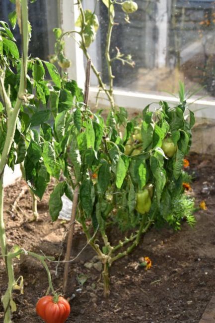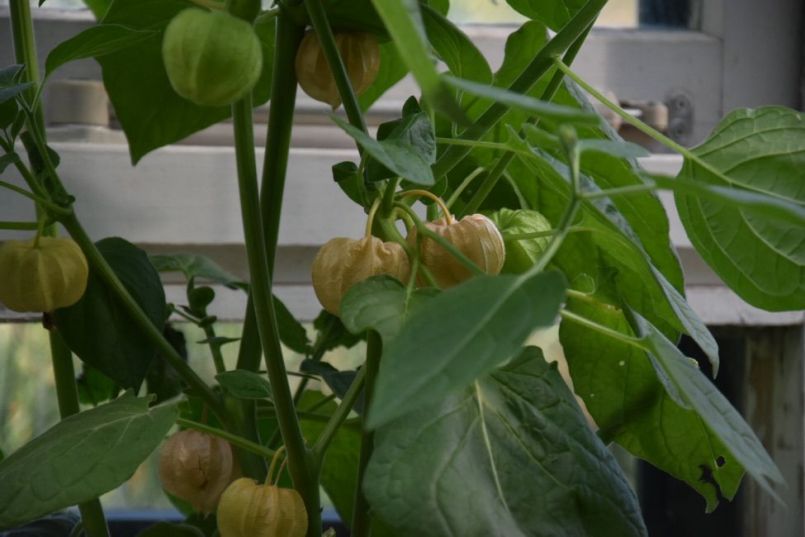 De grootvruchtige physalis in de kas. Het kan wel, maar toch te weinig oogst vind ik.