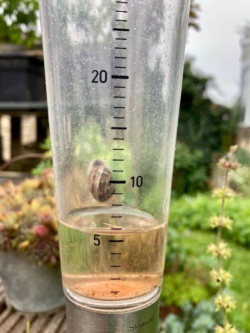 zoveel regen dat de slakken in de regenmeter gingen wonen