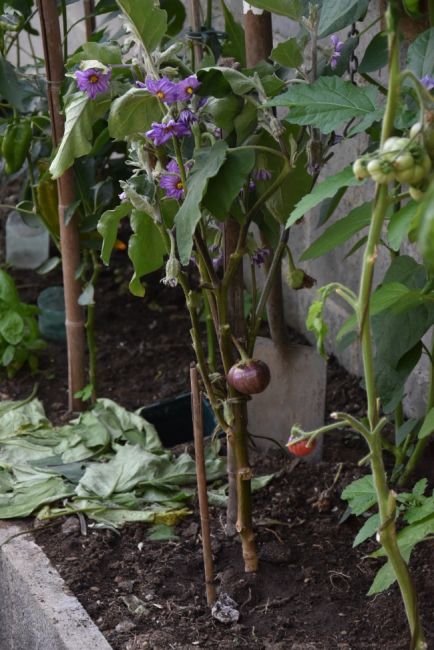 De grootvruchtige physalis in de kas. Het kan wel, maar toch te weinig oogst vind ik.