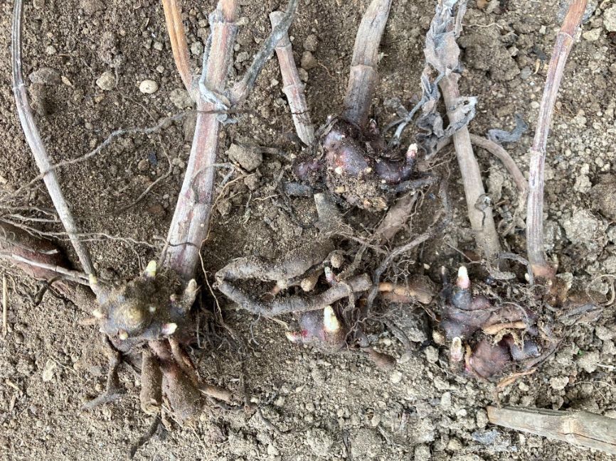 Enfin een heel verhaal om te vertellen dat ik al een beetje begonnen ben met opruimen in de kas, de laatste bietjes en wortels zijn opgegeten, er zitten nog wel wat yakonknollen in de grond. De yakon planten die ik ook had ingekuild in de kas vandaag opgegraven. Er zitten al aardige groeipunten aan. Ik heb de wortels ontdaan van achtergebleven stukjes knol en fliebertjes en de knolletjes in verschillende potten gedaan..ik hou ze nog wel droog.