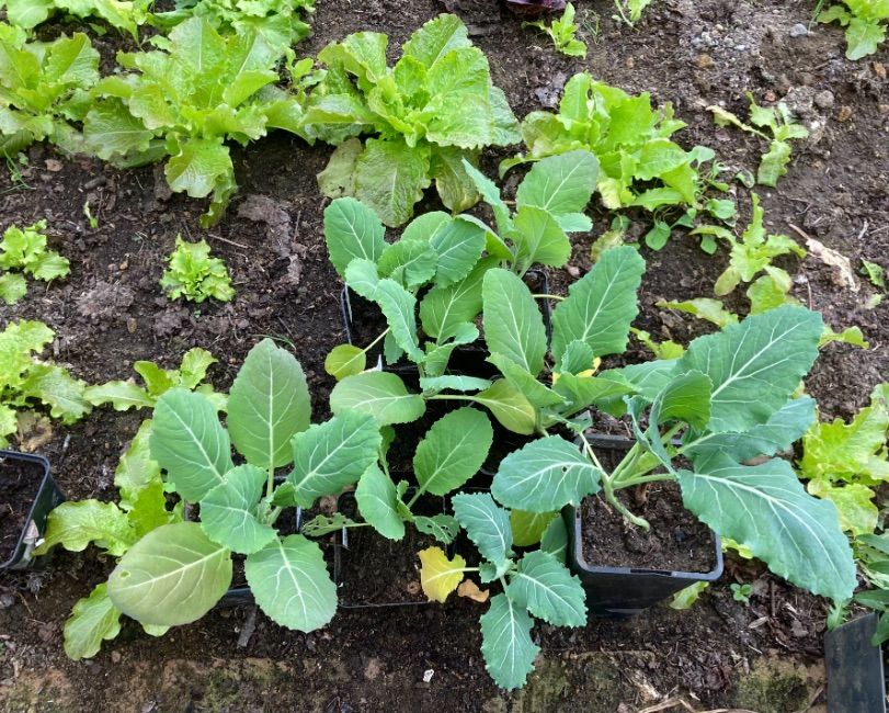 En al deze kleine slaatjes, losjes gezaaid aan t eind van de zomer door een slaplant met zaadjes rond te zwieren. Deze ga ik nu oppotten om weer naar buiten te brengen..tuinieren heeft toch wel iets heen en weer-rigs 🙄