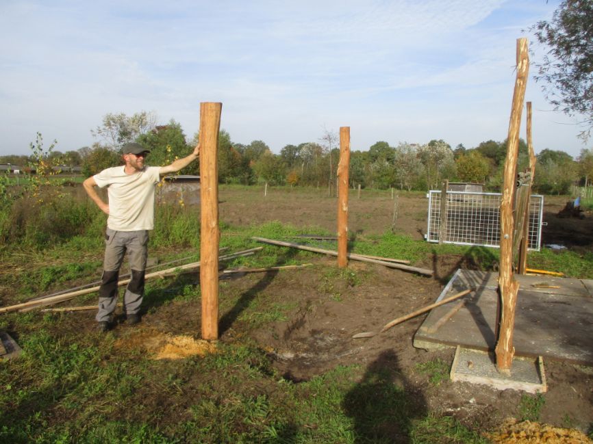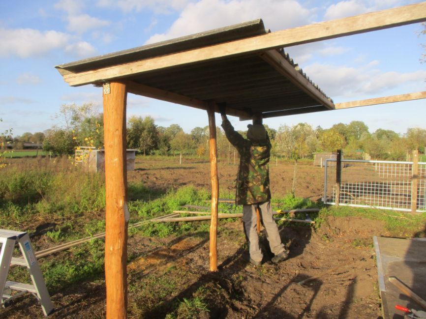 We klussen elke middag wat aan ons ossenhok (wat eigenlijk geen 'hok' wordt, maar meer een afdak-voerplek-doorgang-voor-in-de-winter) en het schiet al aardig op:
