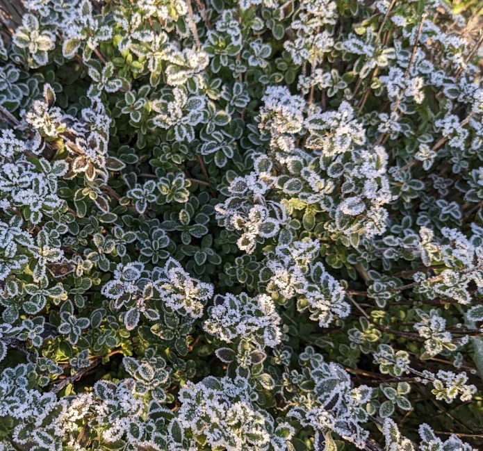 Buiten in de tuin lijkt het saai, maar er gebeurt heel veel, ik zag gewoon groene bieslook sprietjes verschijnen, en knoppen aan bomen en struiken. Soms levert het koude weer mooie plaatjes op.