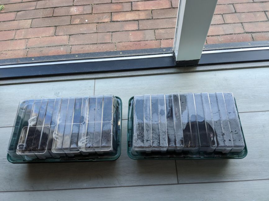 Het is januari, dus dan mag ik pepers en paprika's gaan voorzaaien. Met een paar uur middagzon en de vloerverwarming moet het kiemen wel weer lukken.