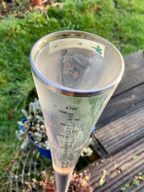 Buiten zat de regenmeter zo vol er kon geen drup meer bij, ver over de 100 l/m2 van 10 december tot 10 januari. In de tuin een mooi bed waar de rode sla volledig was weggevroren en daardoor langs de randen alweer ruimte voor postelein.